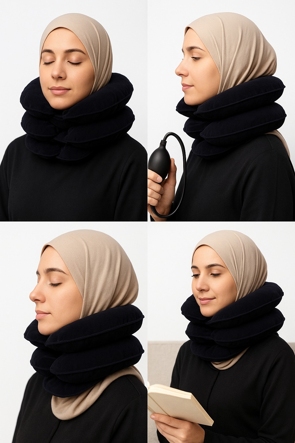 جهاز شد وسحب الرقبة القابل للنفخ – 3 طبقات مع 3 أنابيب | مساج وتراكشن هوائي لتخفيف آلام الرقبة